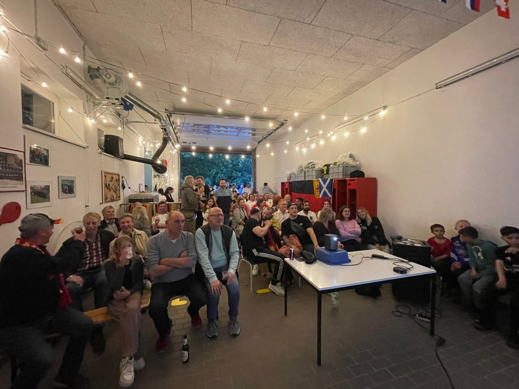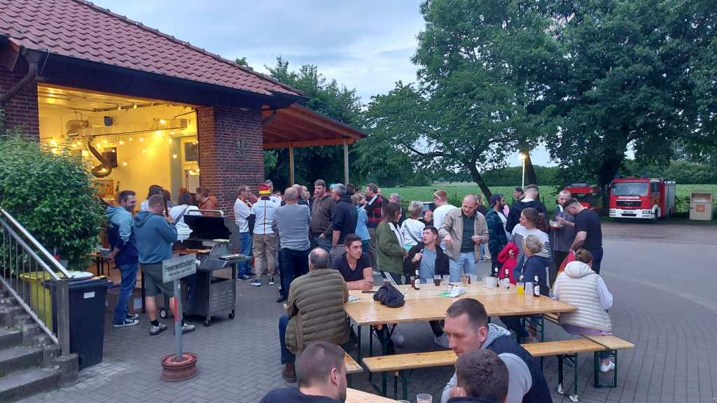 Am vergangenen Freitag war es endlich soweit: Die KWG-Ostenfeld lud zum Public Viewing des EM-Eröffnungsspiels Deutschland gegen Schottland ein, und die Resonanz war überwältigend. Insgesamt 160 Fußballbegeisterte fanden den Weg ins Feuerwehrgerätehaus, um gemeinsam das spannende Fußballspiel zu verfolgen.