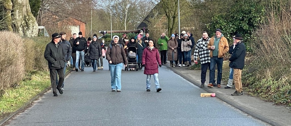 Die bunten Kugeln wurden daraufhin im sportlichen Wettstreit durch das Dorf getrieben, begleitet von Anfeuerungsrufen und guter Laune. Auch das Wetter meinte es gut, so dass die Veranstaltung nicht nur von Regen verschont, sondern sogar noch mit Sonne belohnt wurde. So machte der Klönschnack mit alten und neuen Bekannten doppelt Spaß und die gereichten Getränke (Apfel- und Kinderpunsch mit oder ohne Zielwasser) sorgten auch unterwegs für das leibliche Wohl.